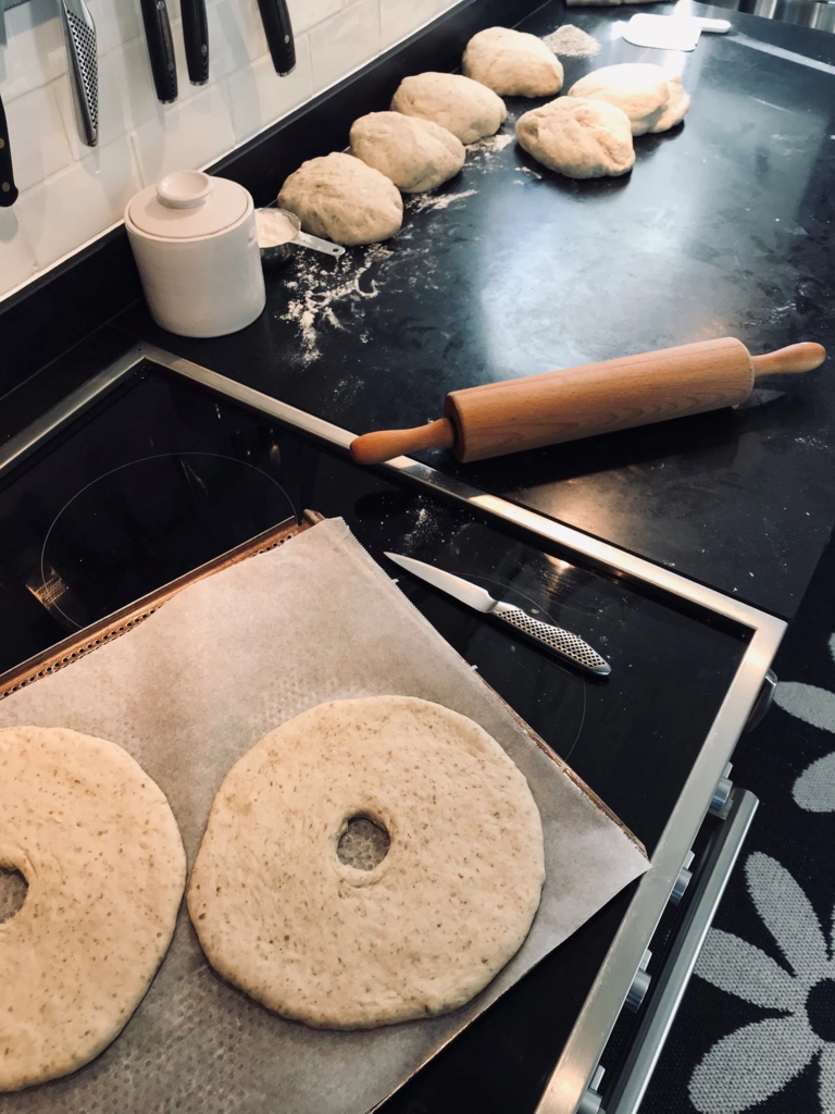 5. Låt jäsa under bakduk i ca 40 minuter. Förbered två plåtar med bakplåtspapper.